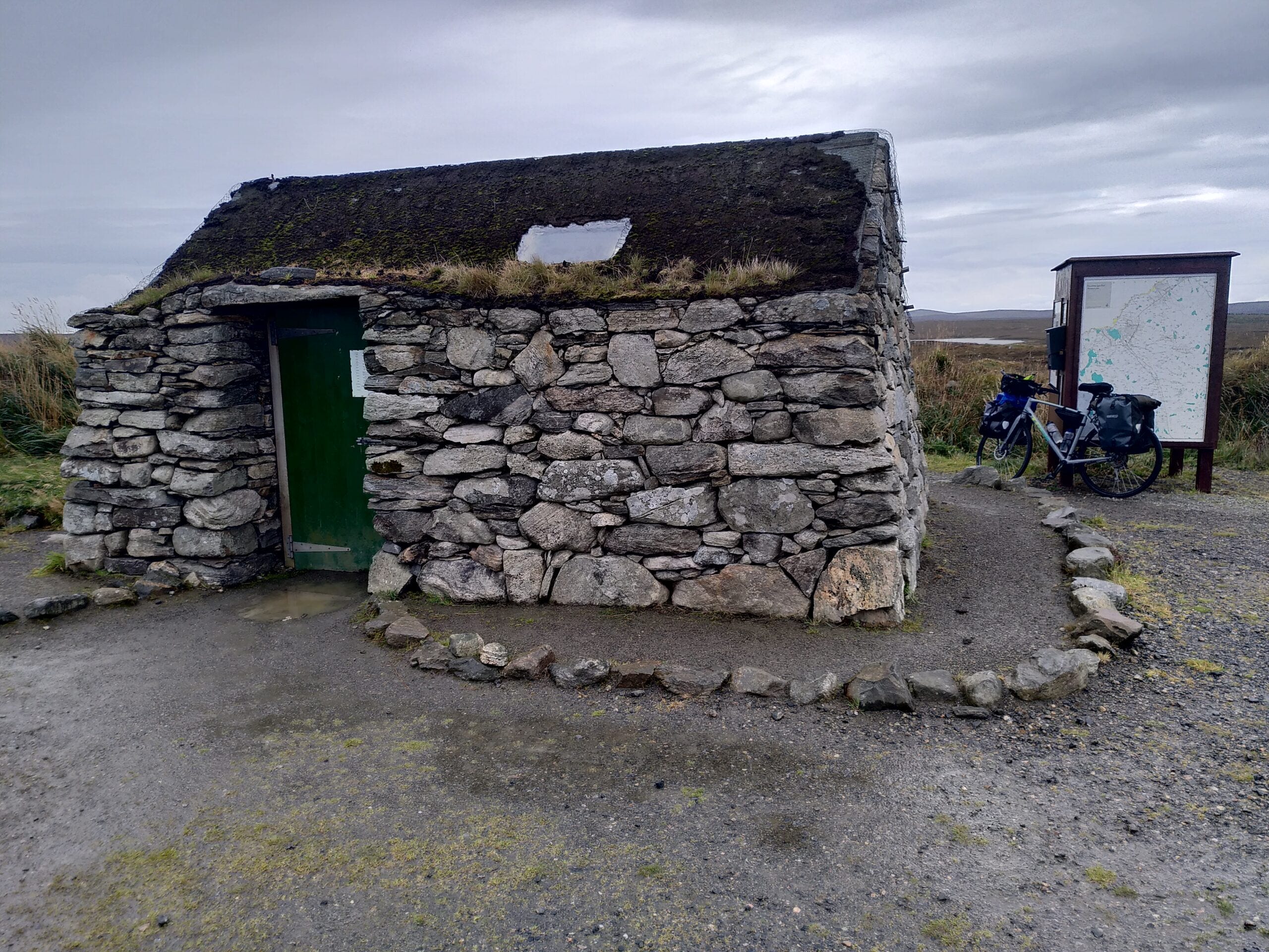 I completed the last part of the ride to the northern tip of Lewis alone. Here’s a picture of an old shieling I came across there, which has now become a small museum. My trusty steed is visible to the right. Less than two centuries ago one branch of my family headed south from a farming life in the Scottish Highlands with similarities to this, joining the modern economy as industrial wage workers. And now here I am returning as a leisured, Lycra-clad English tourist. Again, our culture over-celebrates this shifting baseline as if it’s unambiguously good. So I was pleased that the display didn’t overdo the ‘hard and miserable life of the agrarian past’ shtick, making mention of the celebration and sense of social freedom around the shielings and common pasturage in Gaelic culture. Winters cooped up with family in lowland housing, summers spent carousing in the high pastures. Or else, in other transhumant cultures, winters spent cooped up in large communal dwellings, summers spent in smaller kin groups. Family and freedom, an essential tension.